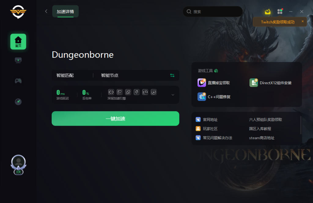 首先说说为啥推荐奇游吧。玩过《Dungeonborne》的都知道,这游戏的网络限制可严了。你要是直接上网连服务器,,连游戏都进不去,但有了奇游加速器,情况就完全不一样了。加速一开,游戏秒连。
