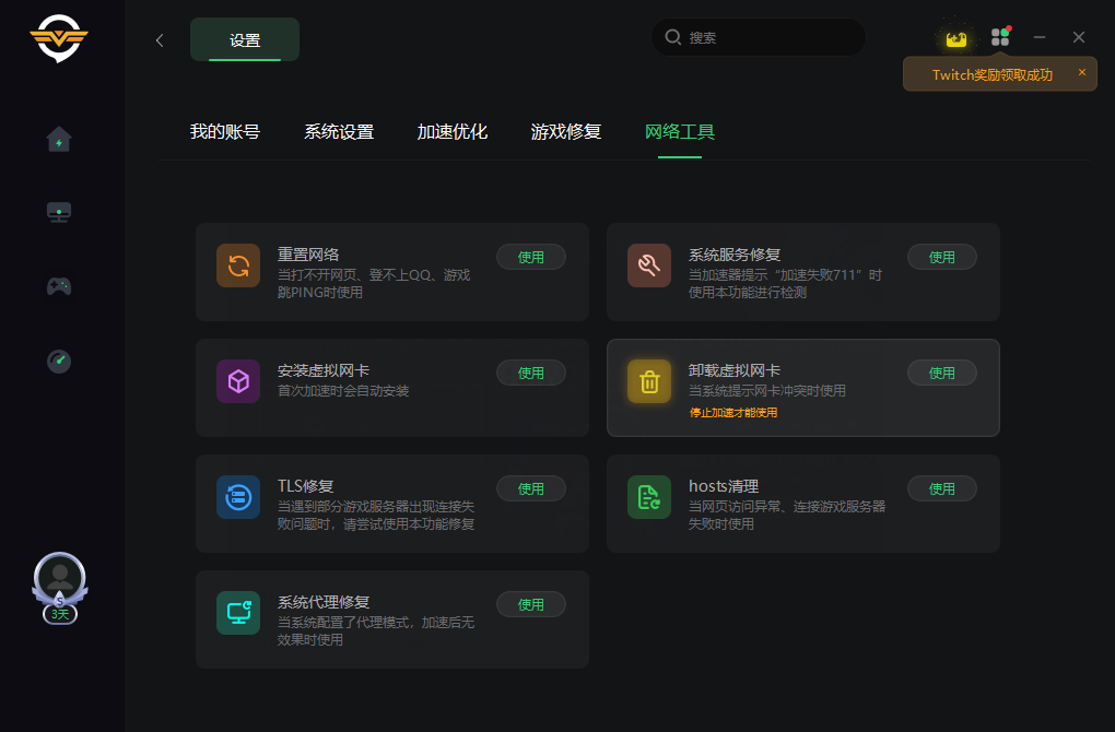 更贴心的是,奇游加速器还内置了一堆实用的网络小工具。比如,你遇到网络设置问题,或者hosts文件异常这些头疼事,不用慌,奇游的网络工具箱统统能帮你搞定。网络问题?不存在的!