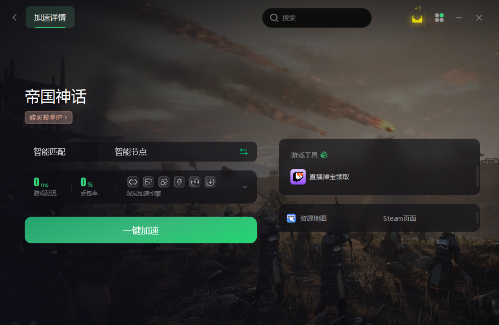 在进入《帝国神话》之前,小编建议玩家们先打开奇游加速工具,搜索“帝国神话”一键加速,降低网络延迟,稳定连接服务器,提升网络数据传输质量,确保玩家可以流畅游玩。