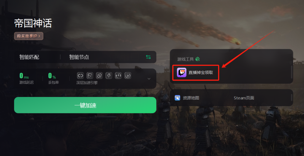 回到《帝国神话》的加速界面,选择对应游戏的掉宝活动,点击“领取”按钮,系统将自动加速,确保顺利参与活动。稍等片刻,确认奖励到账后即可查看。