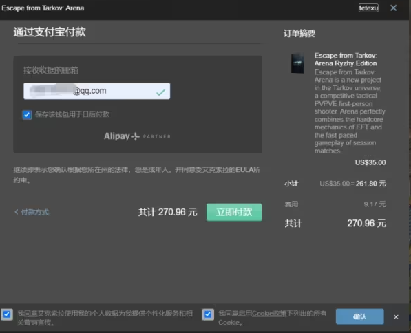 在付款环节,可以点击“显示更多方式”来查找支持Alipay(支付宝)的选项。选择支付宝后,输入你的支付信息及接收收据的邮箱地址,即可完成付款。