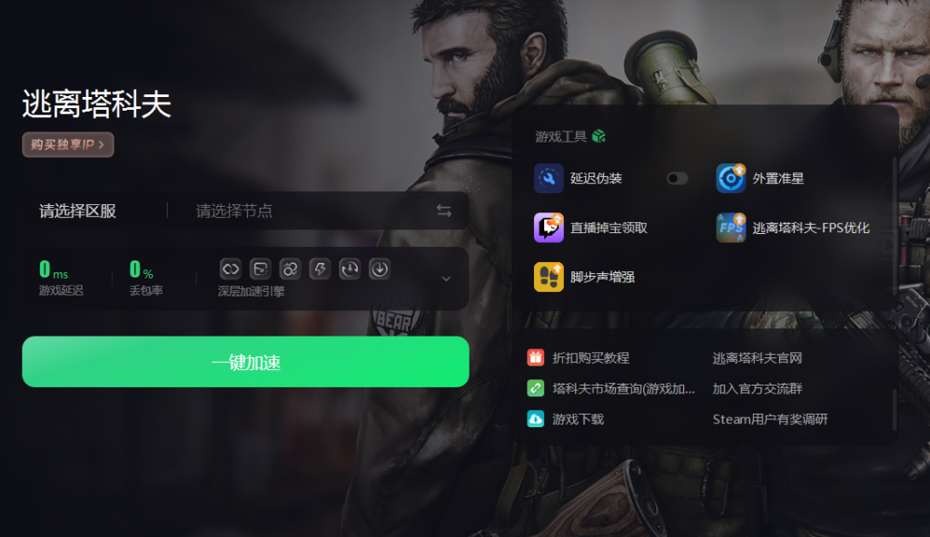 推荐大家使用专业的奇游加速工具,搜索并选定逃离塔科夫进行加速,这样可以有效减少延迟,提升游戏体验。加速完成后通过奇游提供的链接即可直达游戏官网。