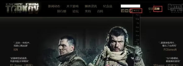 接下来打开《塔科夫生存逃亡记》的官方网站并将页面语言切换为中文,以便更好地理解注册流程。