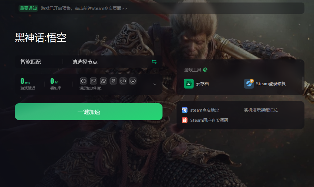 为了确保玩家们在游戏过程中能够享受到流畅无阻的网络体验,《黑神话:悟空》官方还推荐了奇游加速工具,提供了一键优化功能,让玩家无需繁琐设置即可享受最佳网络状态。