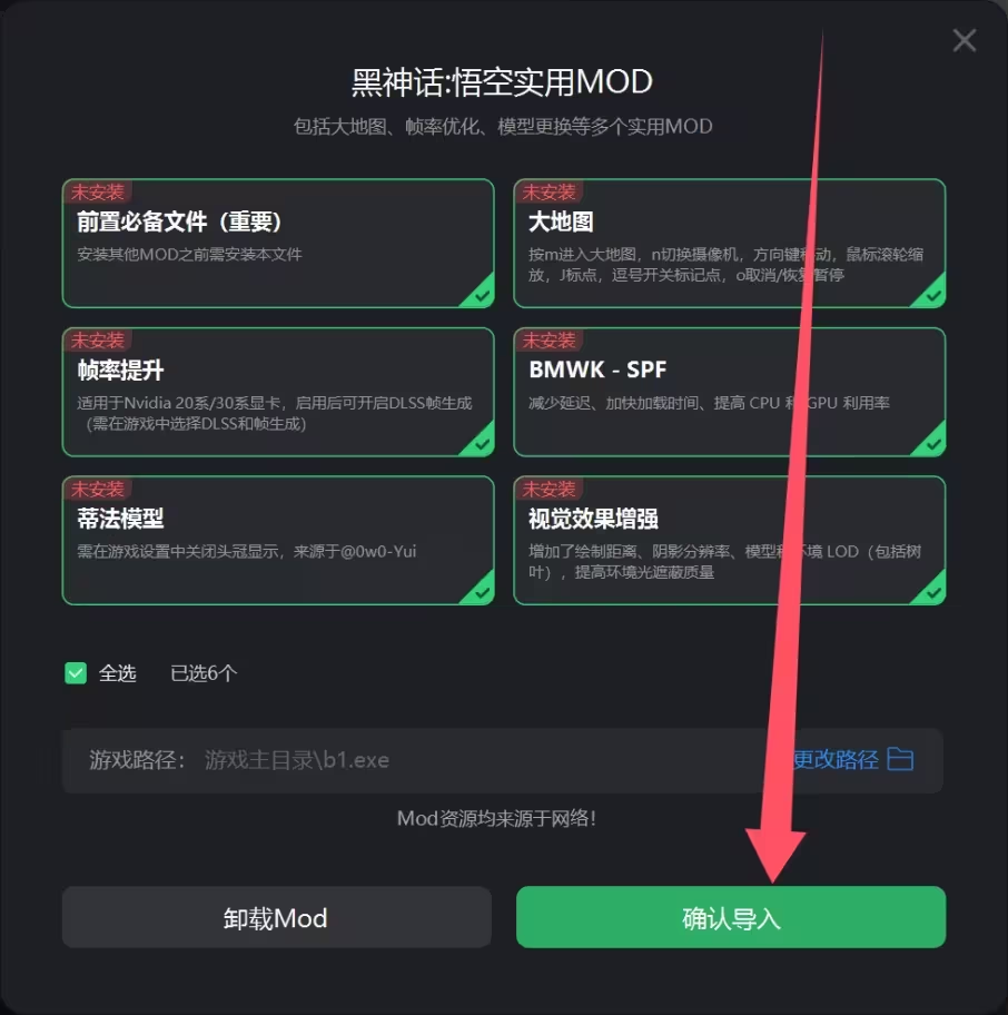 接下来需借助奇游加速工具内置的mod管理工具,一键安装地图mod即可。