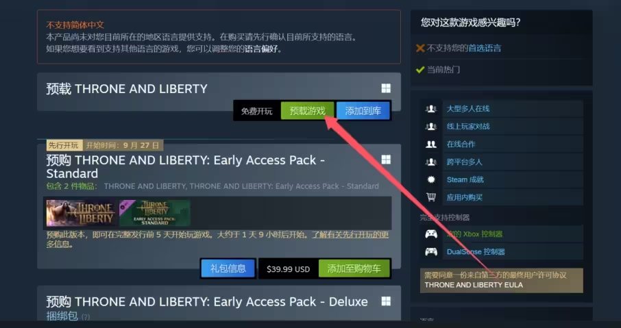 完成账号准备后即可登录Steam,搜索并找到《王权与自由》的游戏页面。
