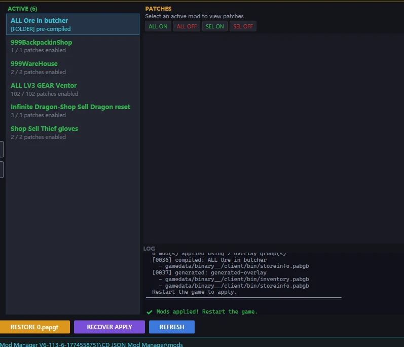 将ALL LV3装备商贩.json文件放入CD JSON模组管理器\mods文件夹中。