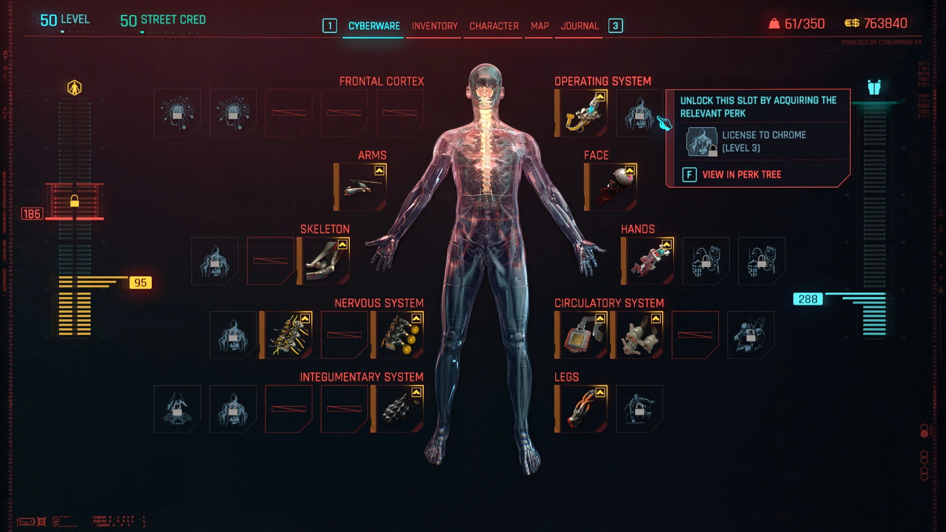 当鼠标悬停在所需的义体插槽上时,会出现一个工具提示,其中包含有关所需技能的信息。