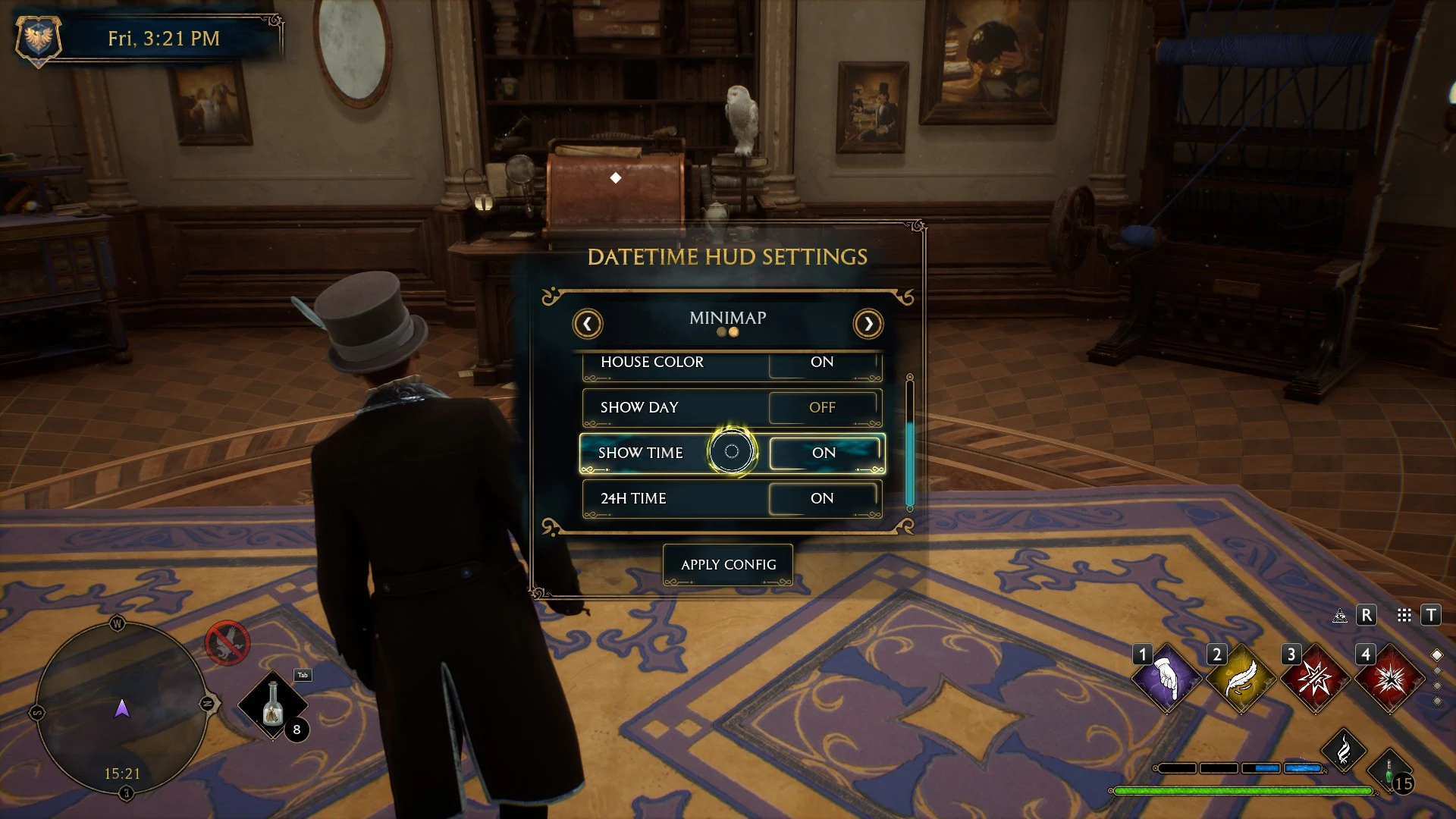 在屏幕上添加一个动画HUD,自动显示游戏世界的当前日期、日期和时间,颜色基于您选择的房子!!