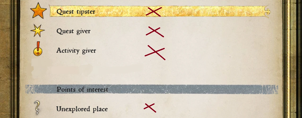 从指南针中隐藏未发现的支线任务、线人、活动和未探索位置的图标。跟踪任务工作得很好,这是为了实现更有机的支线任务和探索,而不是被指南针告诉谁在说话。