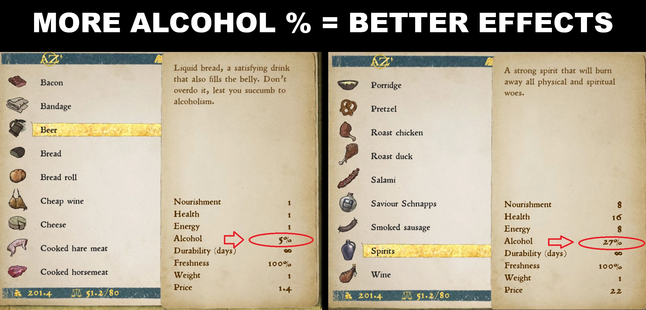 更多的填饱肚子的食物提供更多的健康,更烈的酒精有更强的效果。