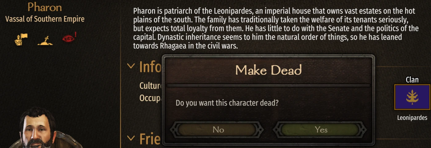 如果你将一个活着的角色的生命值设置为0,会弹出一个窗口建议杀死他。