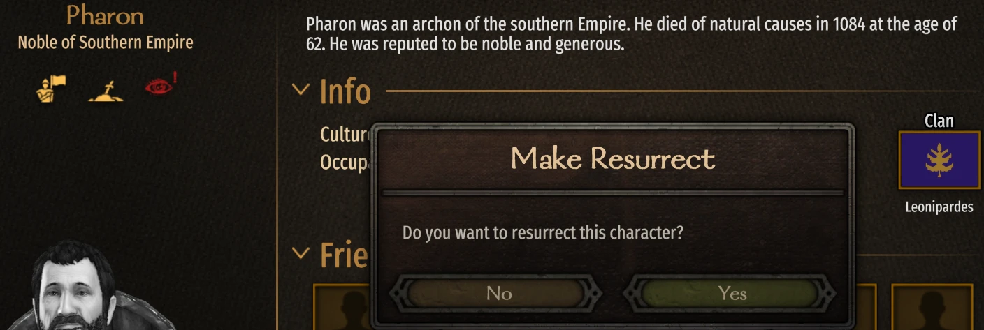 如果你为一个死去的角色设置了不等于0的生命值,会弹出一个窗口让他复活。