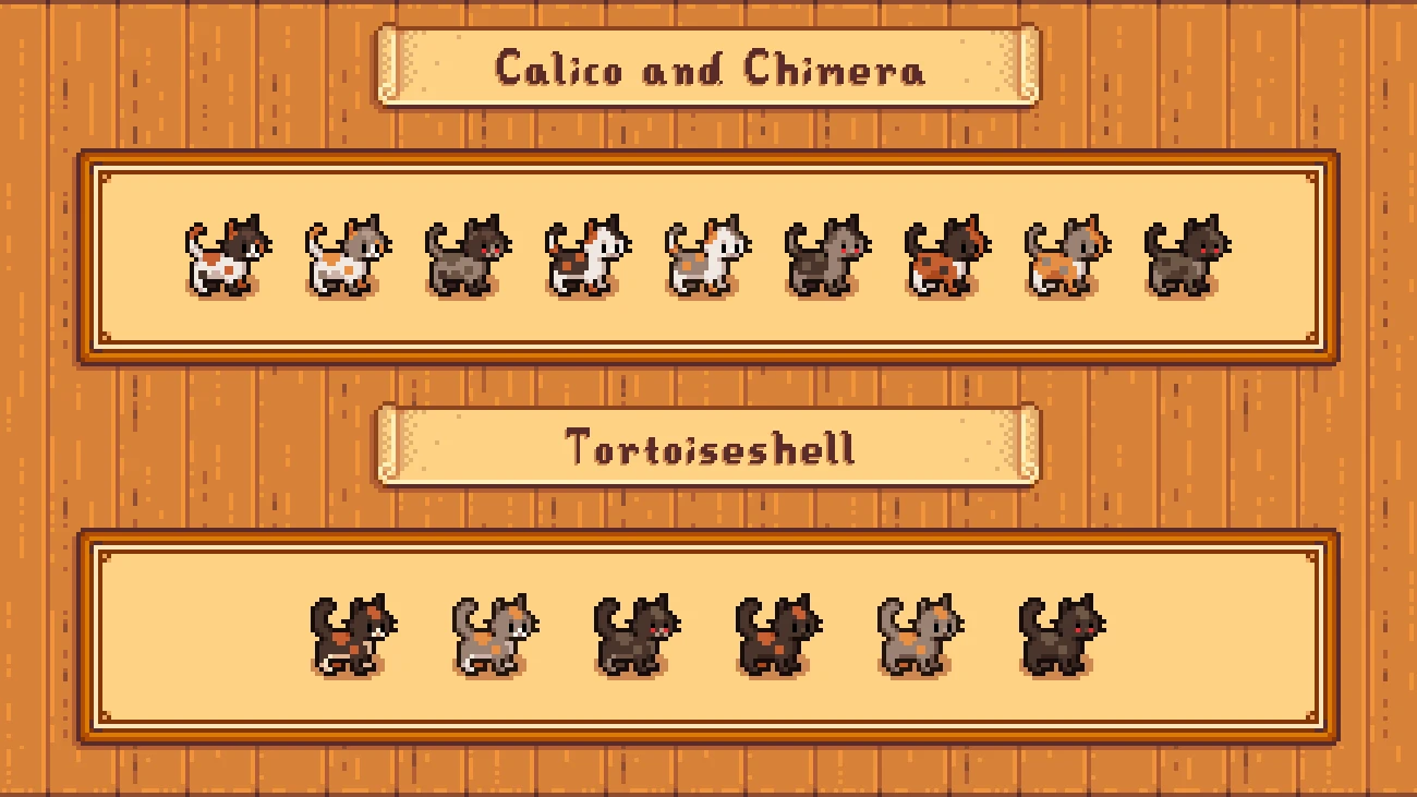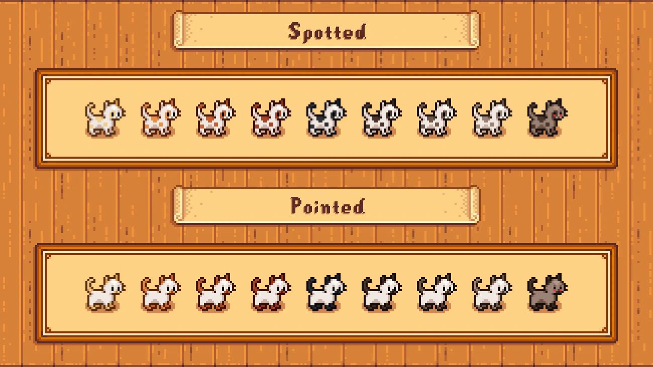 在巫师幻觉神殿改变宠物外貌的机制在星谷1.6中被移除了。如果你没有用你想要的宠物品种开始新的保存,你必须从玛妮那里领养一个你想要的外观的新的。一旦你用现有的宠物达到了红心,如果你从Robin购买了新的宠物碗结构,你可以收养更多的宠物,或者你可以从Krobus购买蝴蝶粉物品来移除你的宠物并收养一个新的。