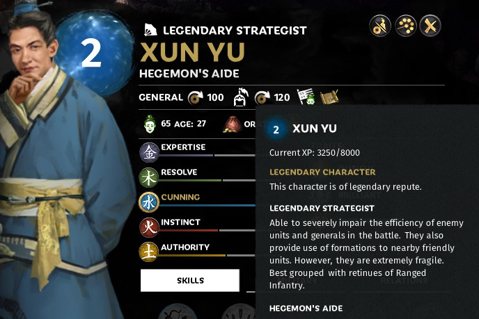 荀彧荀彧开始是郑江的第一回合饲料,如果郑江决定不招募他将在第一回合死亡,你完全受人工智能的摆布。由于他有希望成为传奇,郑江最终会招募他,这使得他更容易出现在游戏后期