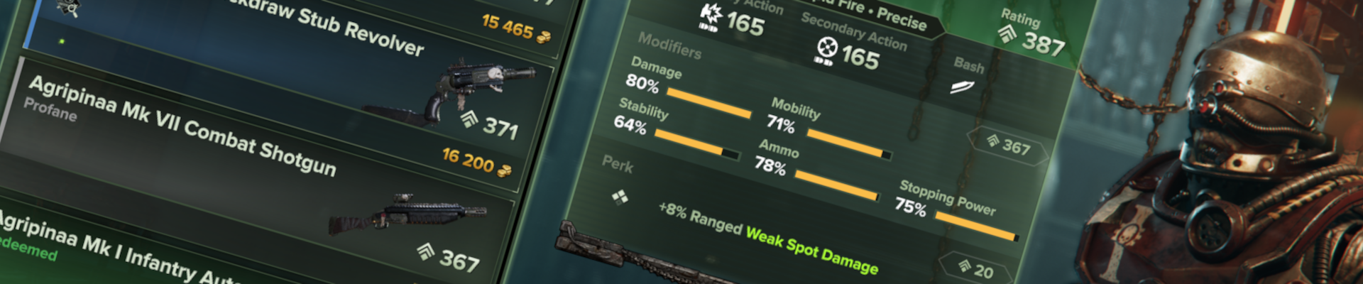 使用darktide提供的武器零件库定制武器。